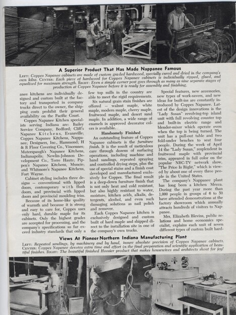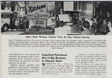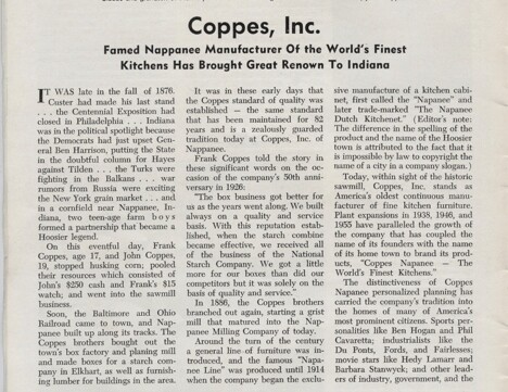 The Indiana Business and Industry Magazine is the focus of this week’s Bill’ History Corner. Thanks for visiting; this is the place where we discuss all things Coppes. This magazine is dated October 1958, and was recently donated by Linda & Mike Bultema. As I understand it, Linda & Mike were reading the old article on Coppes Kitchens, became more interested, found our website and then decided to make a fun day visit to the factory.
