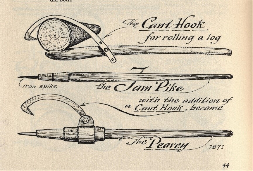 The writing on this receipt appears to be very sloppy, but really that was caused by folding the paper before the ink was dry. This receipt is dated Feb. 20, 1882. The J. C. Mellinger & Co. ordered five (A. B. Reeves Pat.) “Cant Hooks” for a price of $10.00. I’ve hunted the Patent Office web site for the A. B. Reeves Pat. cant hooks but have not found it. I’m also sure that everyone knows what a CANT HOOK is, but just in case you may have forgotten, here is a drawing from an Eric Sloane book.