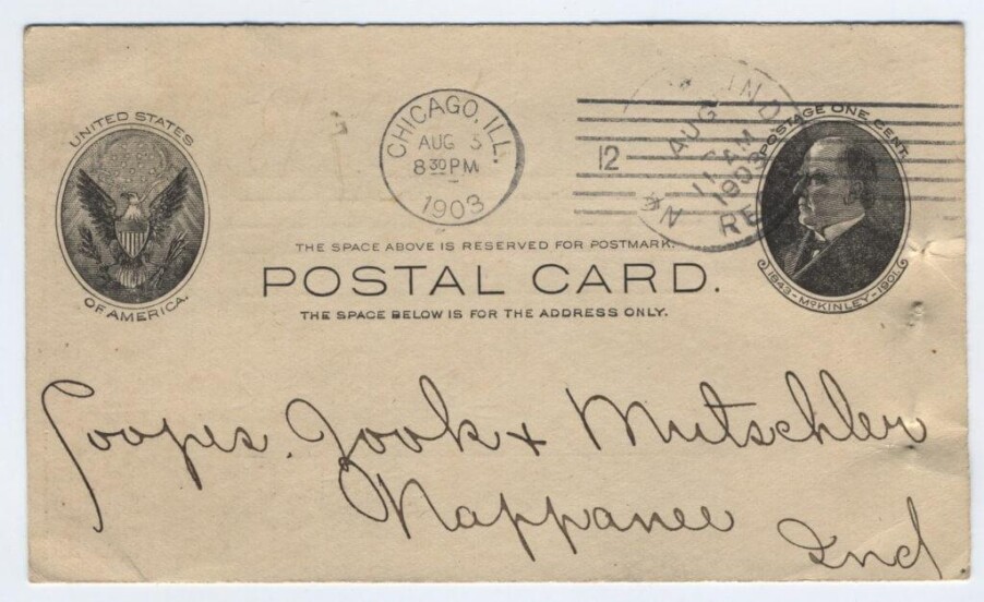 Apparently, the W. L SCOTT CO. sent postcards to coal customers when a shipment was sent (talk about service). We have one of these postcards stating a railroad car ( B & O # 7770, with “Ohio Steam Lump” coal) was shipped on July 27th, but the card was not canceled at the post office till Aug. 3rd. Possibly the coal car arrived in Nappanee from Chicago before the postcard did.