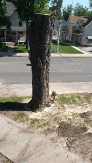 The pictures I want to show you are the last ones, cutting the large tree trunk. This picture will give you a clue as to the size of the trees. Again, remember I was watching from the 2nd floor window, so I was close to the action. When the tree trunk is down on the ground, the decay in the trunk is visible.