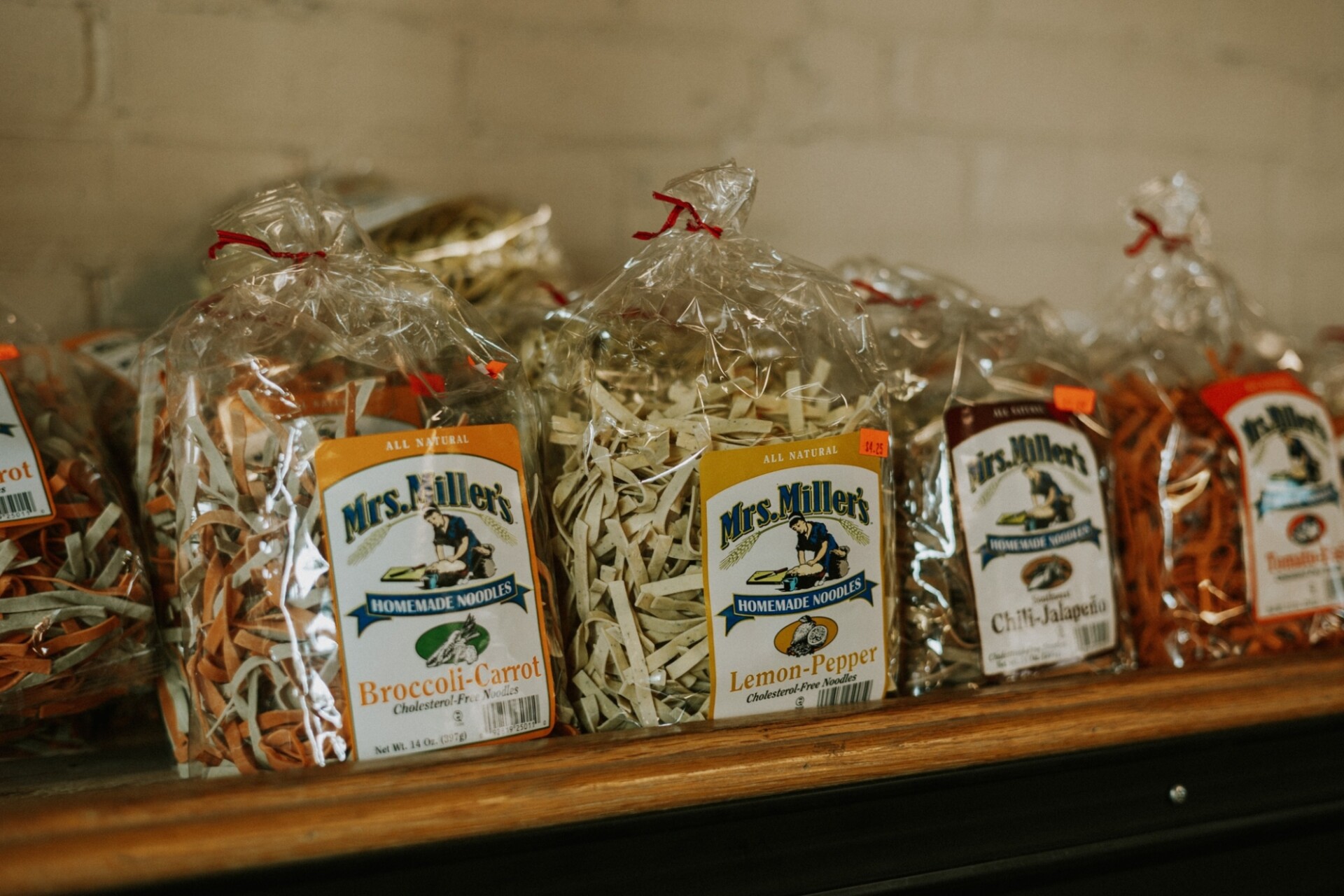At Nappanee’s Bakery & Treat Shoppe, we specialize in making baked goods “the old fashioned way” so we can keep products fresh and tasty for our customers. Homemade bakery items include a variety of pies, cinnamon rolls, whoopie pies, and bread. We make a selection of snack mixes, dips, and deli salads, and offer bulk candies, Amish noodles, drink mixes, local honey, Amish peanut butter, holiday centric cakes, and locally made jellies and jams.Â